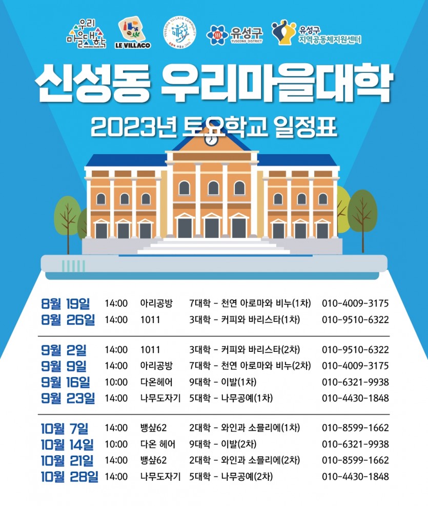 신성동 우리마을대학 토요학교 2023년 시간표