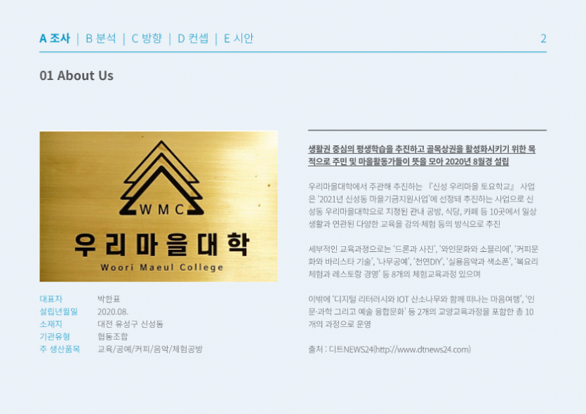 우리마을대학 CI 입니다. 페이지 정보 작성자 르빌라꼬 댓글 0건 조회 92회 작성일 23-09-18 14:16 본문 우리마을대학 CI입니다. 목록 이전글우리마을대학협동조합 공동 브랜드 BI입니다. 23.09.18 다음글신성동 우리마을대학 토요학교 2023년 시간표 23.09.18 댓글 0 댓글목록 등록된 댓글이 없습니다.